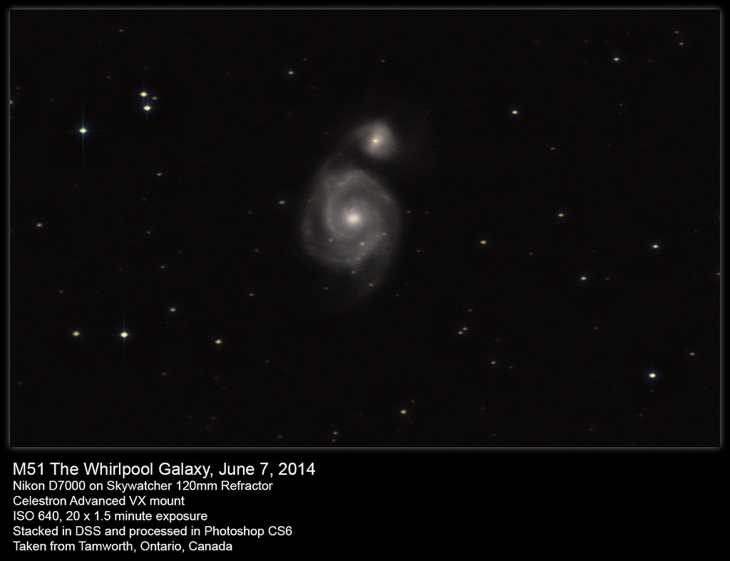 On Sat, June 28, I headed out with my friend Kevin – my regular partner in crime when it comes to astronomy – to see what we could image. As Kevin didn’t have a good scope, we’d normally just work together. He seems to have a better hand and eye when it comes to focusing shots than I do, so I generally line up and find the object, he does the focusing, then I get my intervalometer and we stand around chatting while the camera does its work.